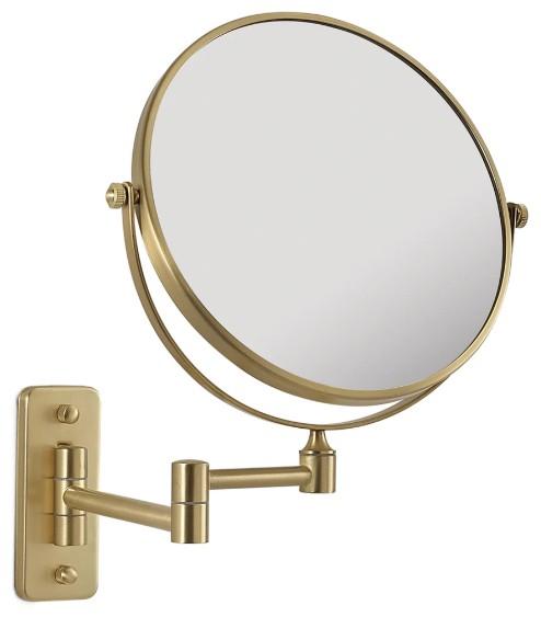 Gaia kosmetikspejl i messing Gedy præsenterer Gaia kosmetikspejl i messing – et væghængt spejl, der kombinerer funktionalitet med sofistikeret design. Med sin varme messingfinish og dobbeltsidede funktion er Gaia et oplagt valg for dig, der ønsker luksus og præcision i hverdagen. Spejlet har to sider: en almindelig spejloverflade og en x3 forstørrelse. Denne fleksibilitet gør det ideelt til præcisionsarbejde som makeup, barbering og hudpleje. Forstørrelsessiden giver dig mulighed for at se alle detaljer, mens den normale side giver et klart overblik. Med dimensionerne Højde 33,5 cm, udtrukket længde 33,5 cm og dybde 5,7 cm er Gaia kosmetikspejl praktisk og pladsbesparende. Den runde spejldiameter på 20 cm sikrer et generøst og klart udsyn. Væghængningen gør spejlet stabilt og skaber et fast arbejdssted på badeværelset. Messingfinishen gør Gaia til et statement-piece i indretningen. Den gyldne tone tilfører varme, eksklusivitet og et tidløst udtryk, der kan matche både moderne og klassiske badeværelsesstile. Gedy har med Gaia skabt et kosmetikspejl, hvor design og funktion mødes. Det er en investering i kvalitet og æstetik, der løfter badeværelset til et nyt niveau af luksus. Specifikationer: