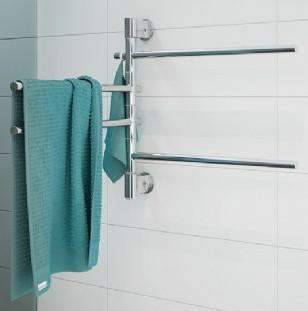 Fondo er en meget praktisk og fleksibel håndklædetørre i poleret rustfrit stål. De lige drejelige arme giver et minimalistisk udseende. Armene kan drejes enkeltvis i 180 grader.
